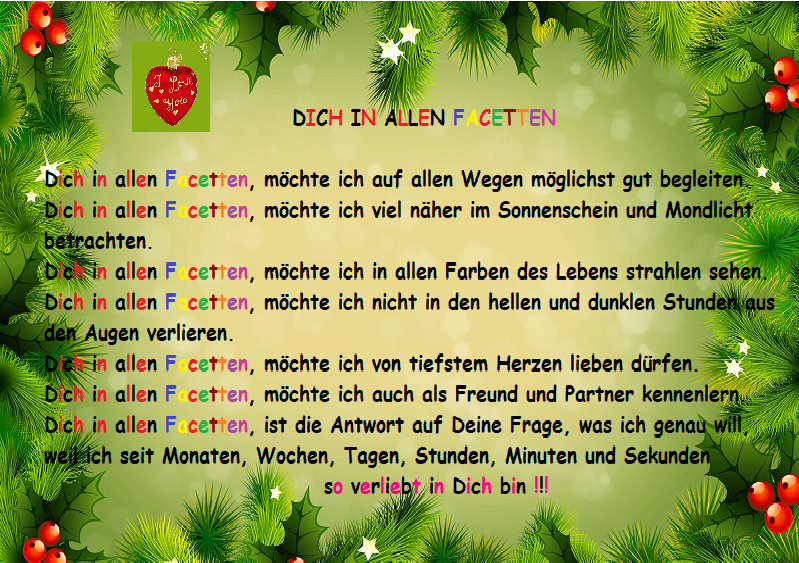 Von Herz zu Herz 2018/2019Die persönliche individuelle Botschaft von mir an Dich zum Weihnachtsfeste ;-)in der Kategorie der Liebesgedichte aus dem fortführenden Band- Kein Fest ohne Liebe von K.Lu